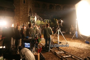 Für RTL wurde als Nachfolger von " Die Jagd nach dem Schatz der Nibelungen" als weiterer Teil " Die Jagd nach der heiligen Lanze" gedreht. Neben Jürgen Prochnow, Bettina Zimmermann, Kai Wiesinger und anderen, spielt in diesem Film auch Rudolf Martin (NCIS - Ari Haswari) mit. Dieser hat mich zu den Dreharbeiten auf Schloß Burg (Nähe Solingen) im August eingeladen. Dort konnte ich dann eine ganze Nacht lang einmal wirklich aus der Nähe beobachten, was für ein Aufwand es ist, solche Szenen in den Kasten zu bekommen.