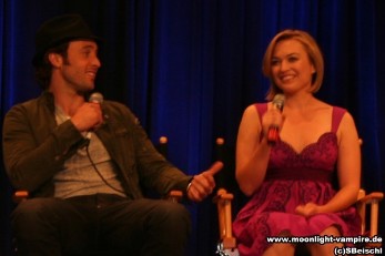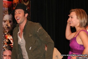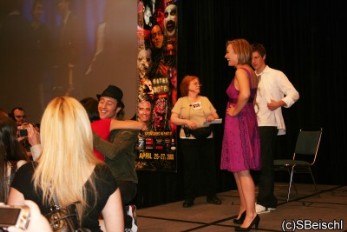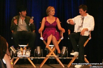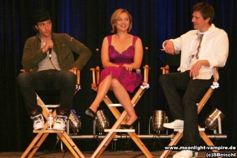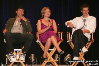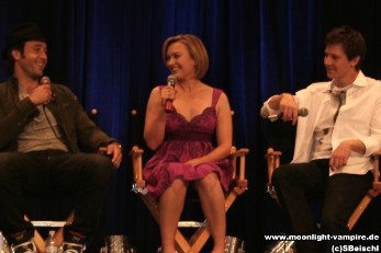 Die Moonlight Crew, Alex O'Loughlin ("Mick St. John), Sophia Myles ("Beth Turner"), Jason Dohring ("Josef Kostan"), beim Fangoria's Horror Weekend am 22. April 2008 im Los Angeles Convention Center.